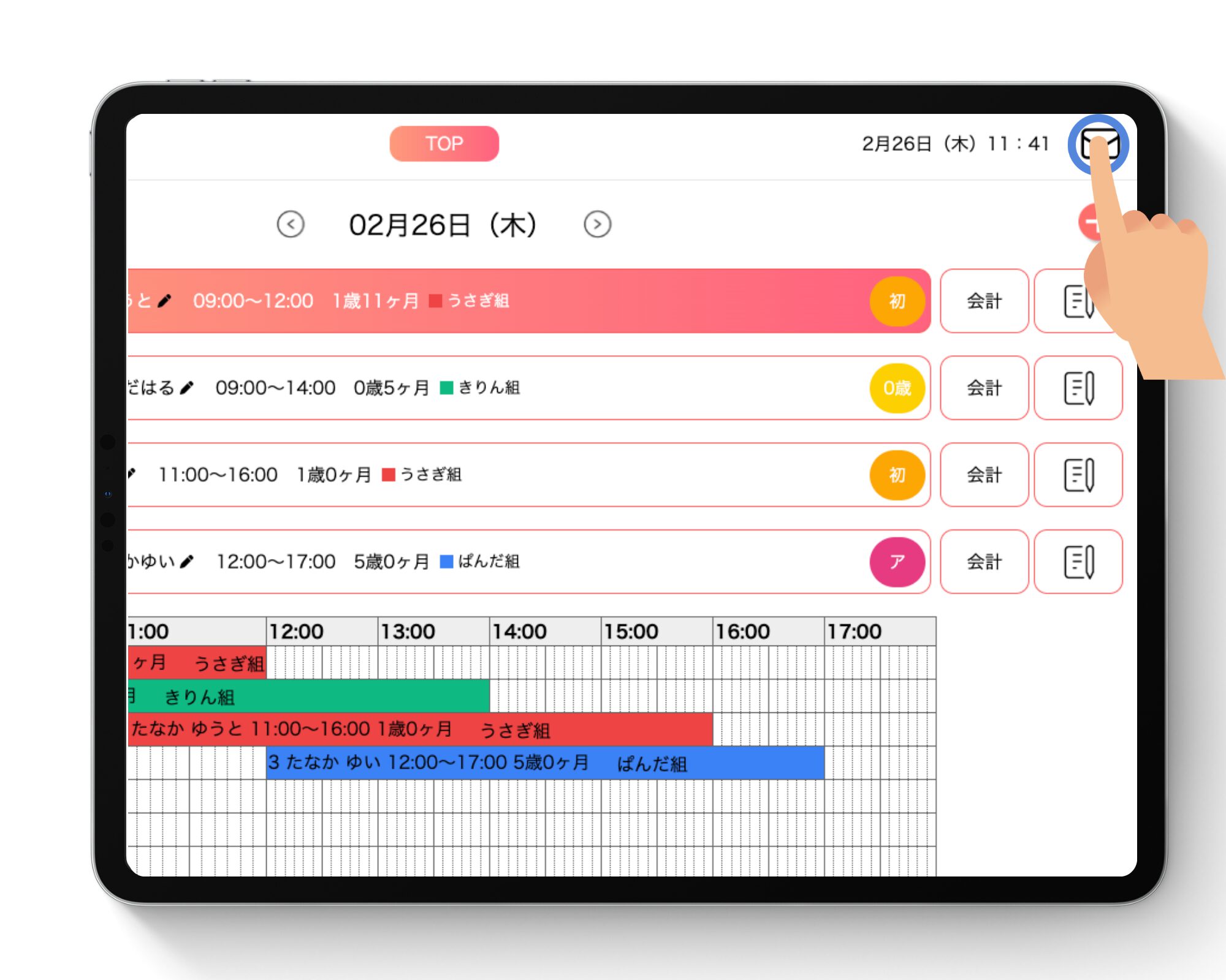 電話連絡と違い、チャットはやり取りの内容が時系列で全て残ります。例えば「お迎え時間の変更」や「薬の服用依頼」など、後から確認が必要になる内容はチャットで送ってもらうよう保護者に促しましょう。スタッフ間での引き継ぎミスを防ぎ、施設の安全管理レベルを向上させることができます。