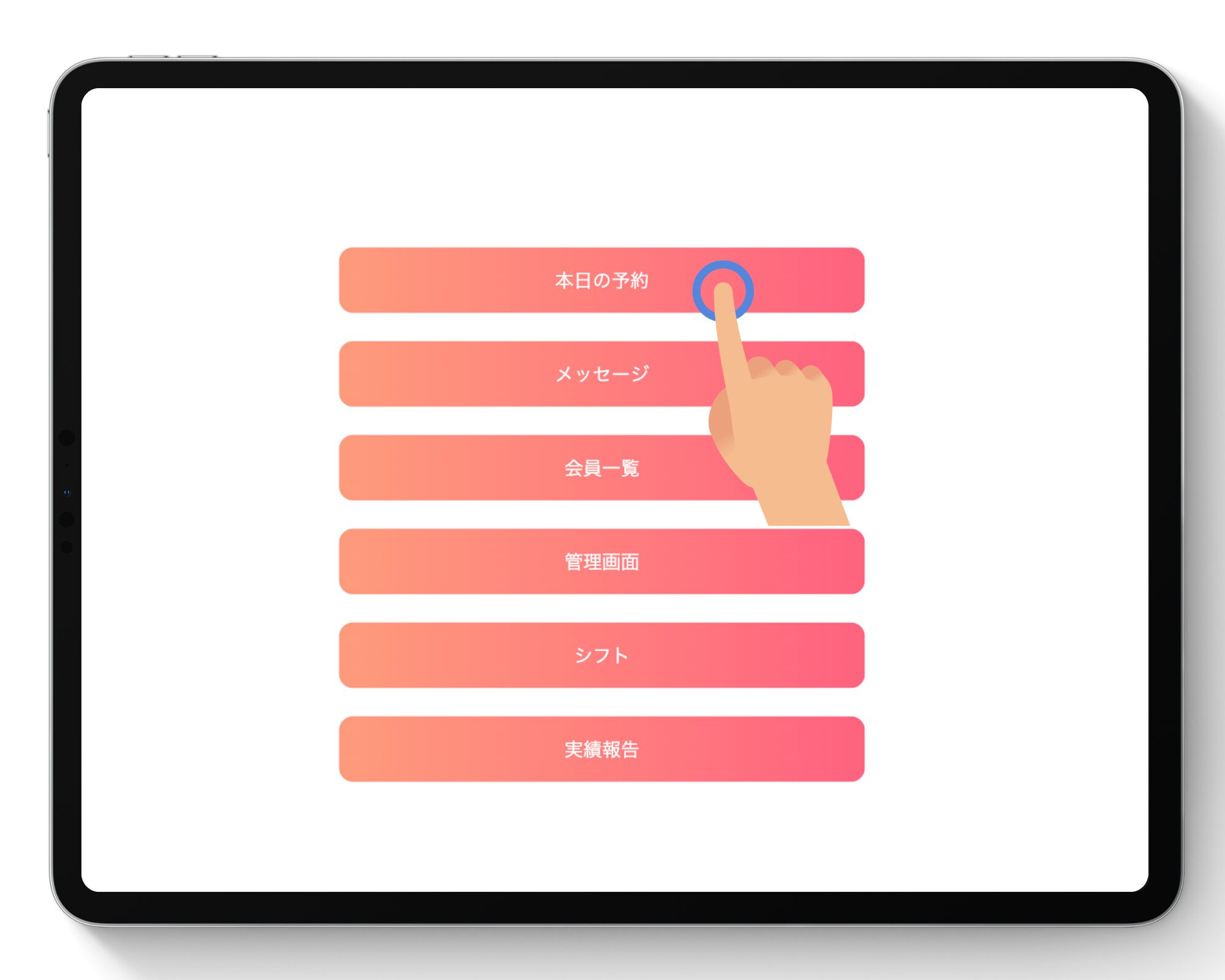 管理画面のメインメニューから「本日の予約」をクリックします。